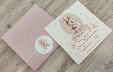 Προσκλητήριο βάπτισης με θέμα το λαγουδάκι