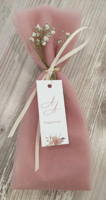 Μπομπονιέρα γάμου με διπλό τούλι σε χρώμα σάπιο μήλο (διάσταση  40*40)