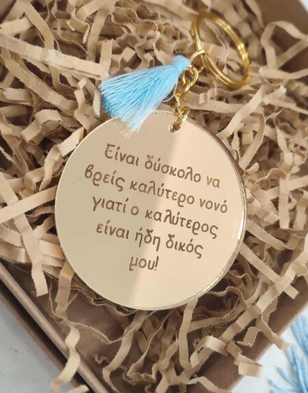 Μπρελόκ Πλεξιγκλάς για τον νονό. Φτιαγμένο από πλεξιγκλάς καθρέφτη χρυσό και χαραγμένο με ευχή.