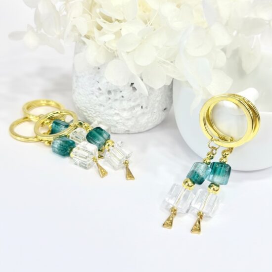 Μπρελόκ με γυαλωμένη χάντρα και σταυρό 24Κ.