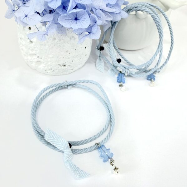 Βραχιόλι με ελαστικό κορδόνι ,αρκουδάκι και επάργυρο σταυρό.