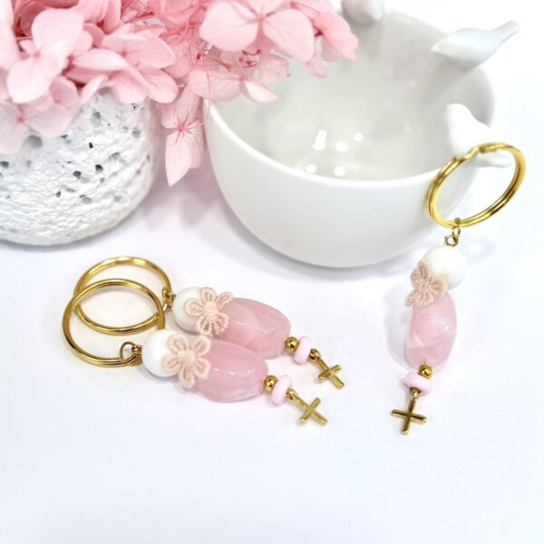 Μπρελόκ με λεπτομέρεια υφασμάτινο λουλουδάκι και σταυρό 24Κ