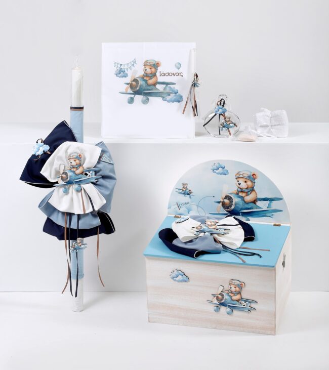 Πακέτο βάπτισης με θέμα αρκουδάκι με αεροπλάνο