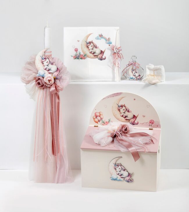 Πακέτο βάπτισης κορίτσι με θέμα μονόκερος.