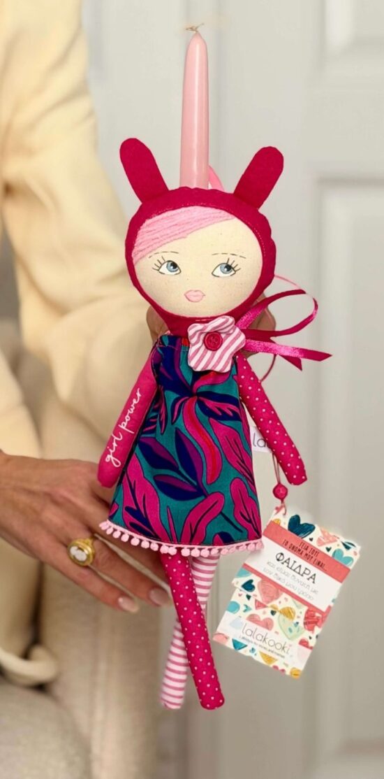 Ραμμένη στο χέρι με υψηλής ποιότητας υλικά, η Φαίδρα συνδυάζει τη γλυκύτητα της παιδικότητας με τη δυναμική ενέργεια μιας σύγχρονης  ηρωίδας.