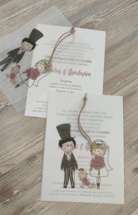 Προσκλητήριο γάμου  βάπτισης δεμένο με σπάγκο χωρίς φάκελο.