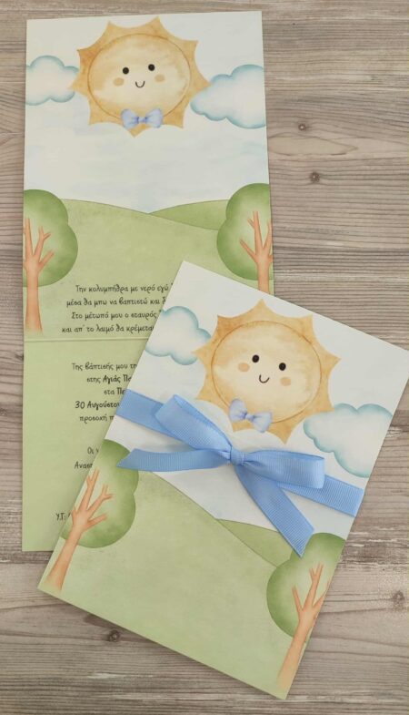 Προσκλητήριο βάπτισης με θέμα ήλιος.