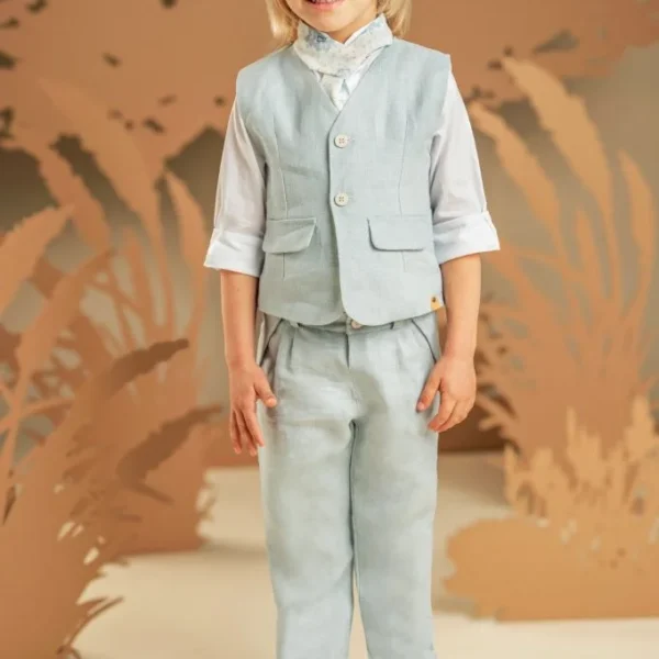 Ένα σετ που συνδυάζει πρωτοτυπία και κομψότητα, ιδανικό για ιδιαίτερες εμφανίσεις. Το λινό παντελόνι σε απόχρωση ginger yellow προσθέτει χρώμα και στυλ, ενώ το διπλό effect γιλέκο με πλαϊνό κλείσιμο, από γκοφρέ βαμβακερό ύφασμα σε μπεζ-γκρι τόνους, ολοκληρώνει όμορφα το σύνολο. Το λευκό βαμβακερό πουκάμισο με Mao γιακά και το τετράγωνο φουλάρι σε λευκό τσαλακωμένο βαμβακερό ύφασμα, προσθέτει μια φρέσκια και μοντέρνα πινελιά. Για το τελικό αποτέλεσμα, επιλέξτε ανάμεσα σε ψάθινο καπέλο ή υφασμάτινη τραγιάσκα, ανάλογα με το προσωπικό σας στυλ.