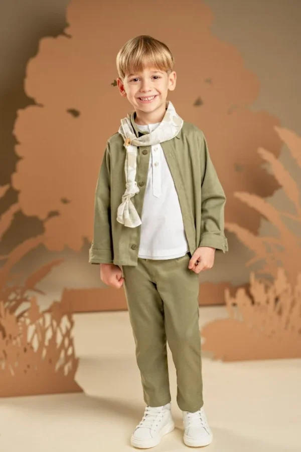 Ένα υπέροχο σύνολο που αποπνέει αίσθηση χαλαρής κομψότητας. Το παντελόνι από χακί ύφασμα Tencel-cotton συνδυάζεται ιδανικά με τη λινή λευκή τουνίκ από λινο, ενώ το πουκάμισο με το πρωτότυπο σχέδιο στα πλαϊνά —σε ύφασμα και χρώμα ίδιο με το παντελόνι— δίνει έμφαση στο layered look και προσθέτει σύγχρονη αισθητική. Το φουλάρι σε μπεζ αποχρώσεις με φλοράλ τύπωμα Baby Bloom exclusive συμπληρώνει το στυλ, ενώ για το τελικό look μπορείτε να επιλέξετε ανάμεσα σε ψάθινο καπέλο ή υφασμάτινη τραγιάσκα, ανάλογα με το προσωπικό σας γούστο.