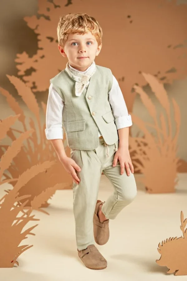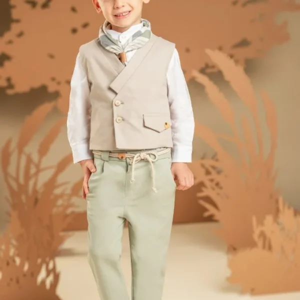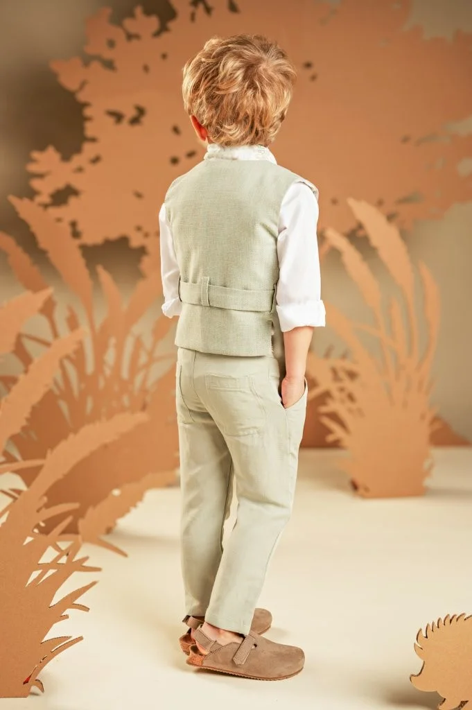 Ένα σετ με μοναδικό σχέδιο και χρώμα που ξεχωρίζει με την εκλεπτυσμένη αισθητική του. Το δίπιετο παντελόνι με τη λοξή πατιλέτα σε απόχρωση salvia από μαλακό ύφασμα linen-viscose συνδυάζεται υπέροχα με το εξαιρετικό γιλέκο με τη ζώνη πίσω φτιαγμένο από υπέροχο ιταλικό ύφασμα cotton-linen στους τόνους της μέντας. Το λευκό βαμβακερό πουκάμισο με Mao γιακά και το φουλάρι σε αποχρώσεις μπεζ-salvia με exclusive τύπωμα Baby Bloom ολοκληρώνει μοναδικά το look. Για την τελική πινελιά, επιλέξτε ανάμεσα σε ψάθινο καπέλο ή υφασμάτινη τραγιάσκα, σύμφωνα με το προσωπικό σας στυλ.