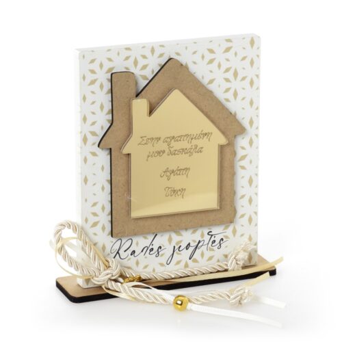 Ξύλινο επιτραπέζιο διακοσμητικό με ξύλινο και χρυσό plexiglass σπιτάκι και ευχές Στην αγαπημένη μου δασκάλα – Αγάπη-Τύχη